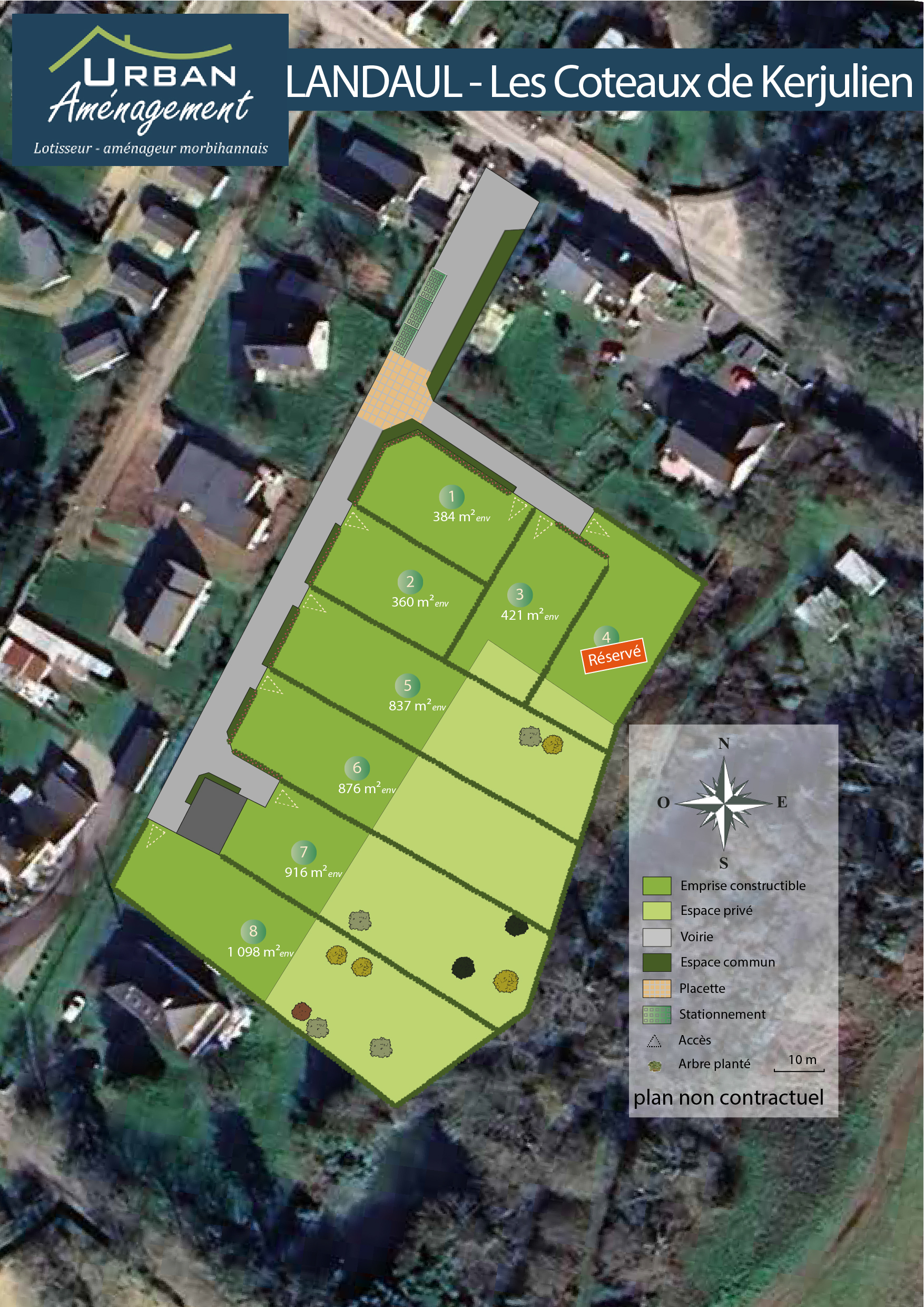 C'est à proximité du centre-bourg de Landaul, que se dessine un nouvel aménagement "les Coteaux de Kerjulien". Ce petit aménagement de seulement 8 lots s'intègre de façon harmonieuse dans un espace bâti ouvert sur la campagne environnante. La disposition étagée des lots permettra d'offrir des espaces intimistes à ses futurs habitants et une conception économe de leur habitat. Conçu dans un respect de son enironnement proche, les fonds de jardin feront une liaison parfaite entre l'habitat et la nature préservée. PA 56096 25 T0001 en date du 29/09/2025