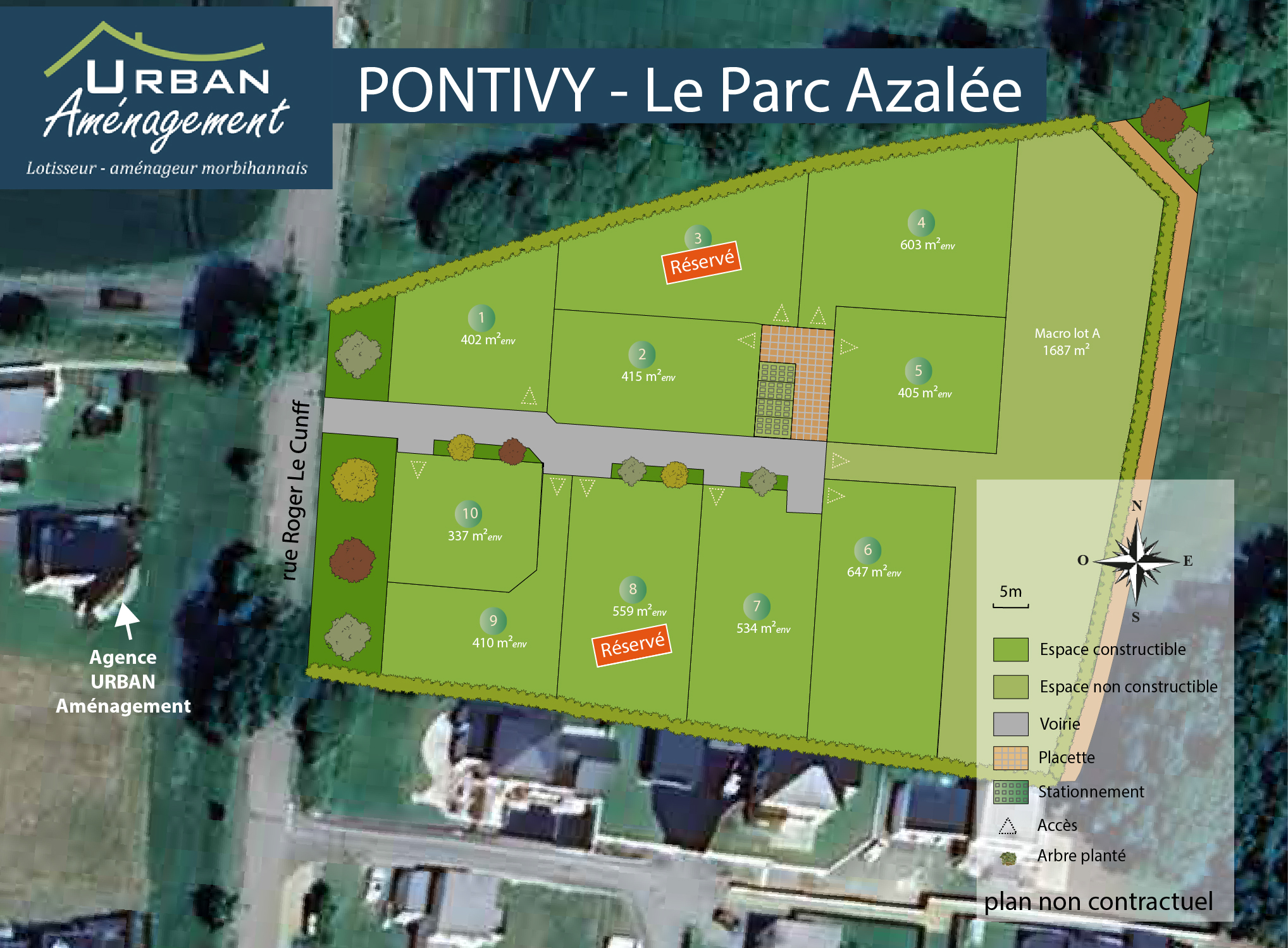 Après le succès des trois précédents aménagements - Le Domaine de Lisa, Nouvel Horizon et Les Jardins de Jazz - un nouvel écrin voit le jour au Nord de Pontivy, dans l’un des quartiers les plus prisés des Pontivyens. Le Parc Azalée, aménagement de 11 lots vient clore de façon harmonieuse l’entrée de ville. Il offrira à ses futurs habitants un cadre de vie pratique et apaisant grâce à son accès direct à la rocade Nord, la proximité immédiate des commerces, des services, des écoles et des sentiers menant vers le canal de Nantes à Brest, invitant à la sérénité et aux balades en pleine nature. Conçu dans un profond respect de son environnement, ce projet intègre des noues paysagères pour la gestion naturelle des eaux pluviales et préserve une frange végétale harmonieuse, véritable lien avec les espaces naturels alentour. Le lotissement, séparé de la route, par un espace végétalisé apportera quiétude au quotidien. Plus qu’un simple aménagement, ce nouveau quartier contribue à la vitalité et au dynamisme de Pontivy, tout en s’inscrivant dans une urbanisation harmonieuse et respectueuse de l’existant. Arrété de PA n° 56178 25 X0002 en date du 20/08/2025.
